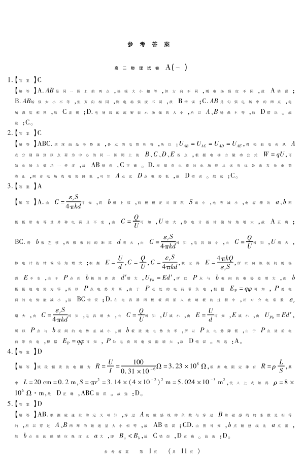 新时代高中教育联合体2025年11月高二学年期中联考巩固卷(一)物理A答案.pdf