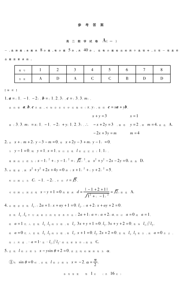 新时代高中教育联合体2025年11月高二学年期中联考巩固卷(一)数学A答案.pdf