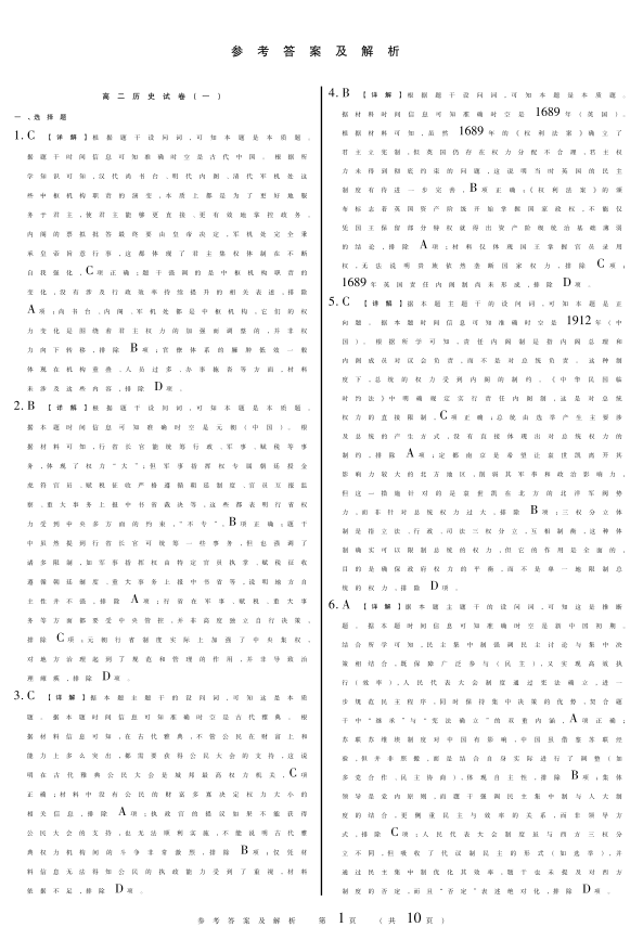 新时代高中教育联合体2025年11月高二学年期中联考巩固卷(一)历史答案.pdf