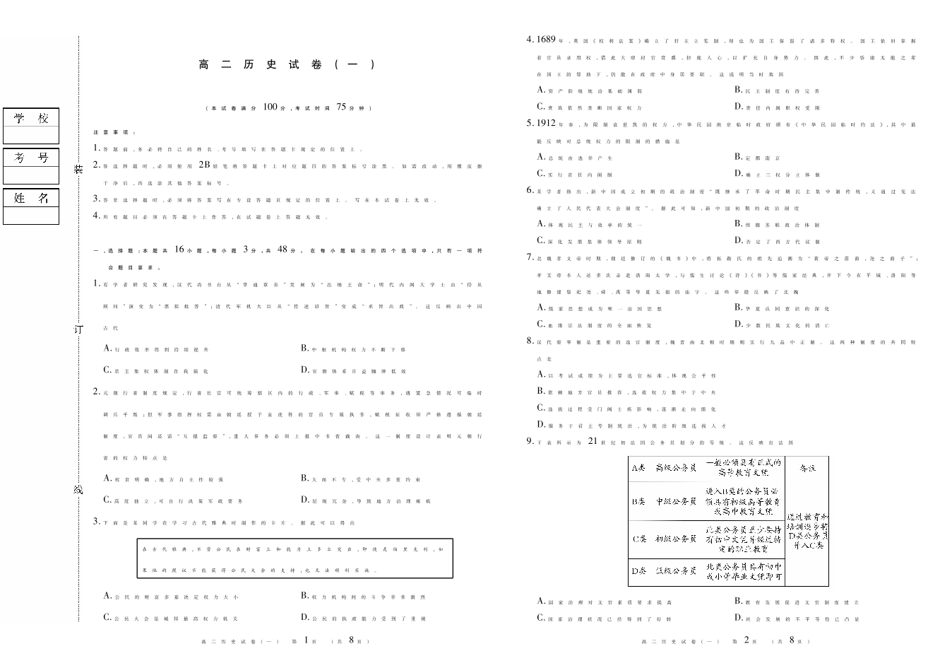 新时代高中教育联合体2025年11月高二学年期中联考巩固卷(一)历史.pdf