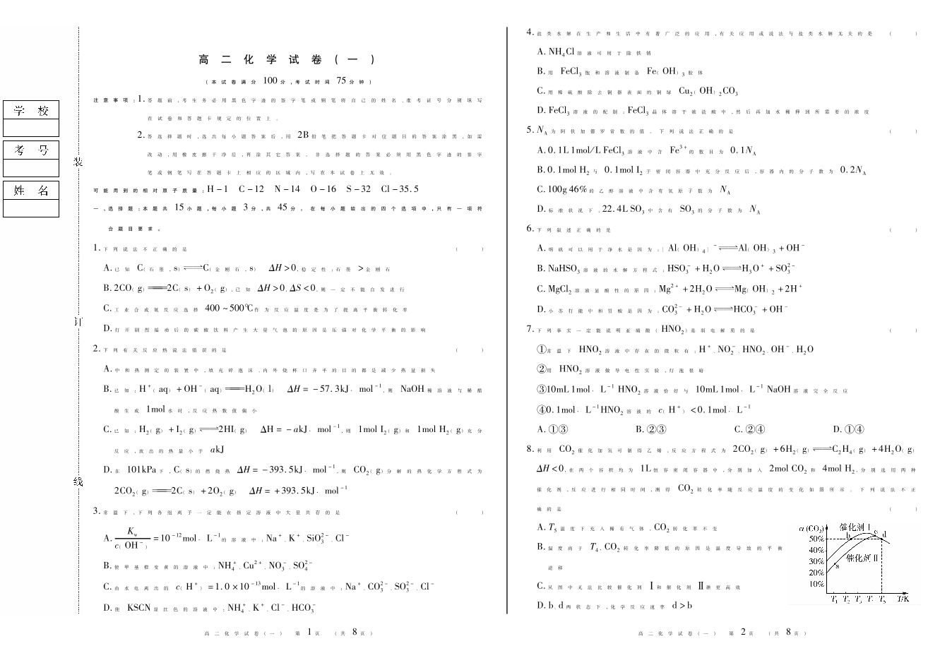 新时代高中教育联合体2025年11月高二学年期中联考巩固卷(一)化学.pdf