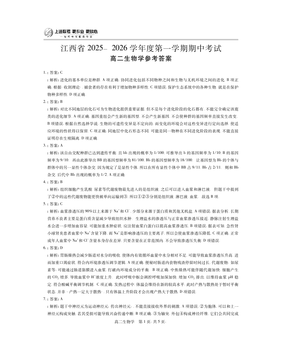 江西省上进联考2025-2026学年高二上学期11月期中考试·生物答案.pdf