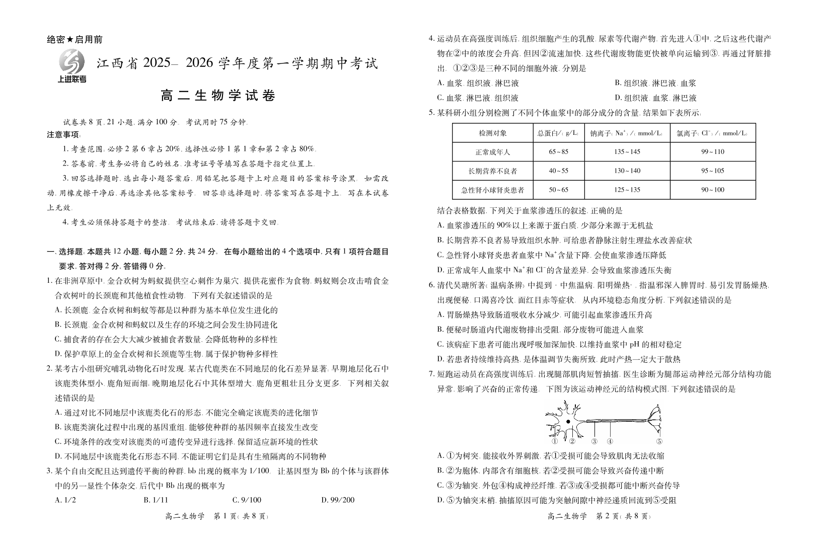 江西省上进联考2025-2026学年高二上学期11月期中考试·生物.pdf