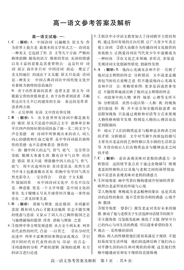 新时代高中教育联合体2025年11月高一学年期中联考巩固卷(一)语文答案.pdf