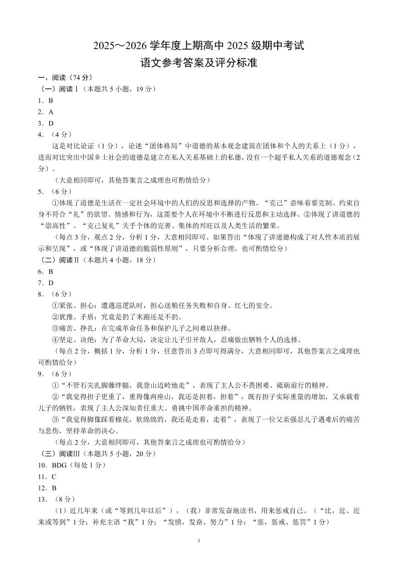 2025~2026学年度上期高中2025级期中考试 语文参考答案及评分标准.pdf