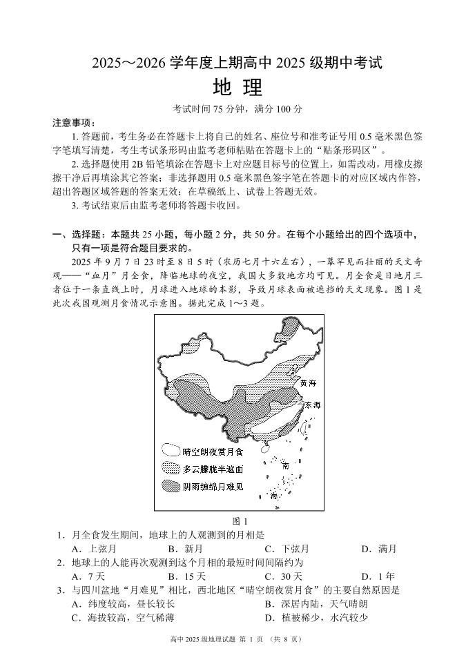 2025~2026学年度上期高中2025级期中考试 地理.pdf