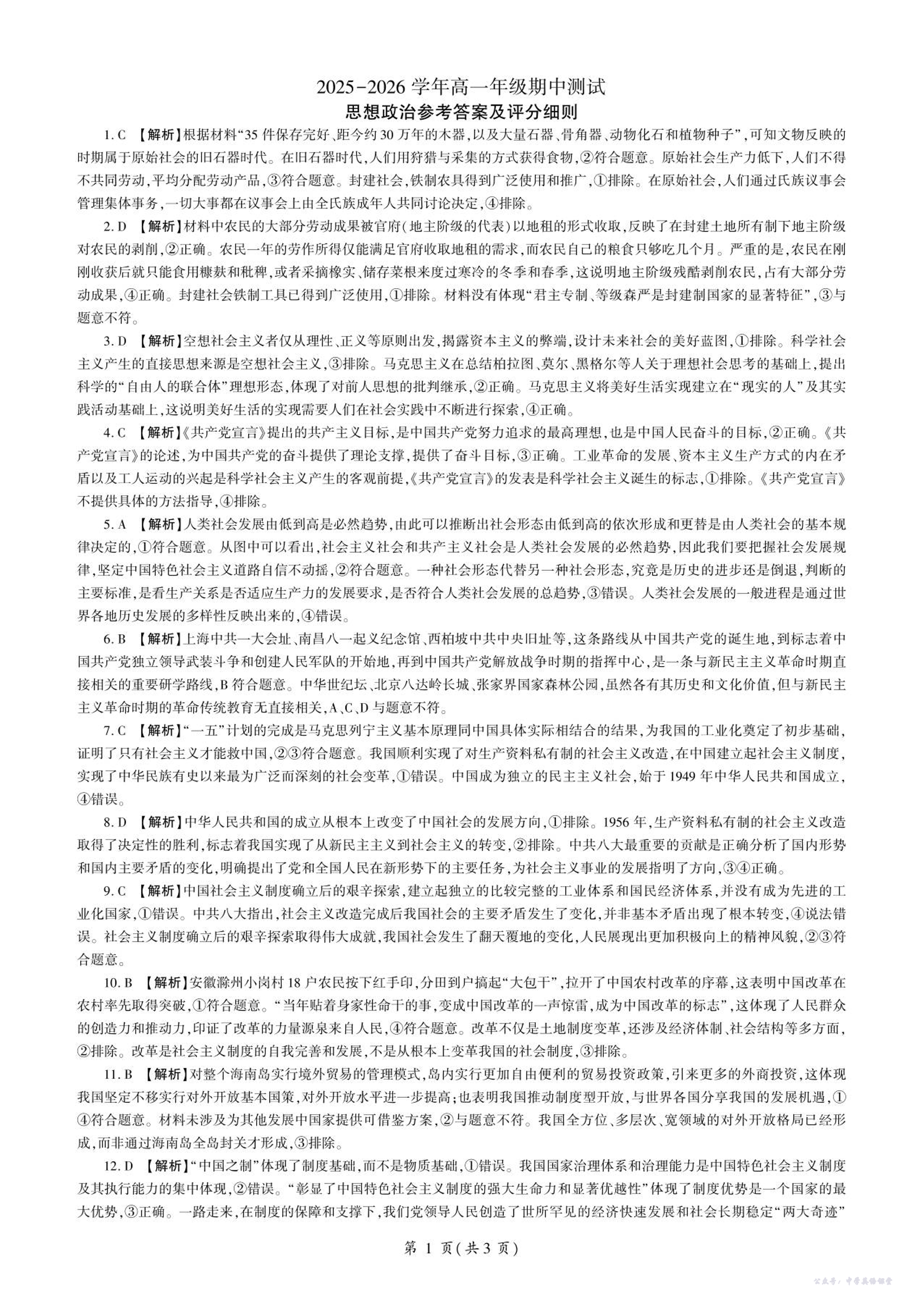 辽宁省点石联考2025-2026学年高一年级期中测试 政治答案.pdf