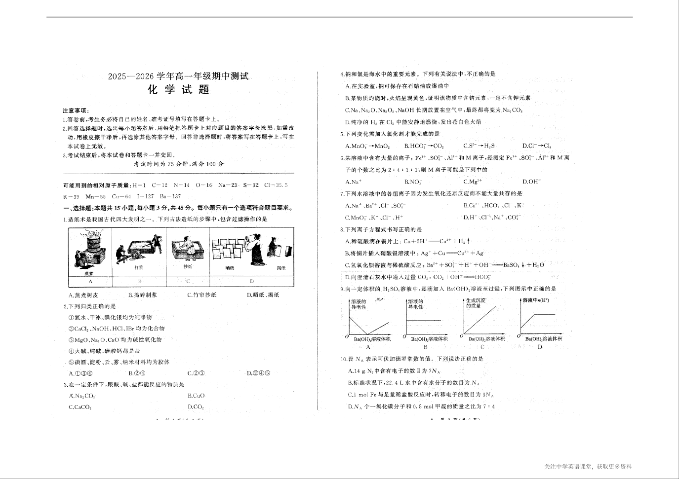 辽宁省点石联考2025-2026学年高一年级期中测试 化学.docx