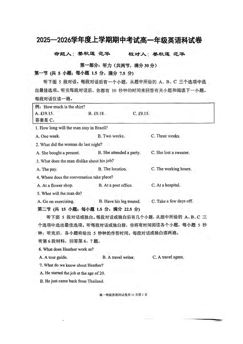 辽宁省大连市第二十四中学2025-2026高一(上)期中考试 英语试题(含答案).pdf
