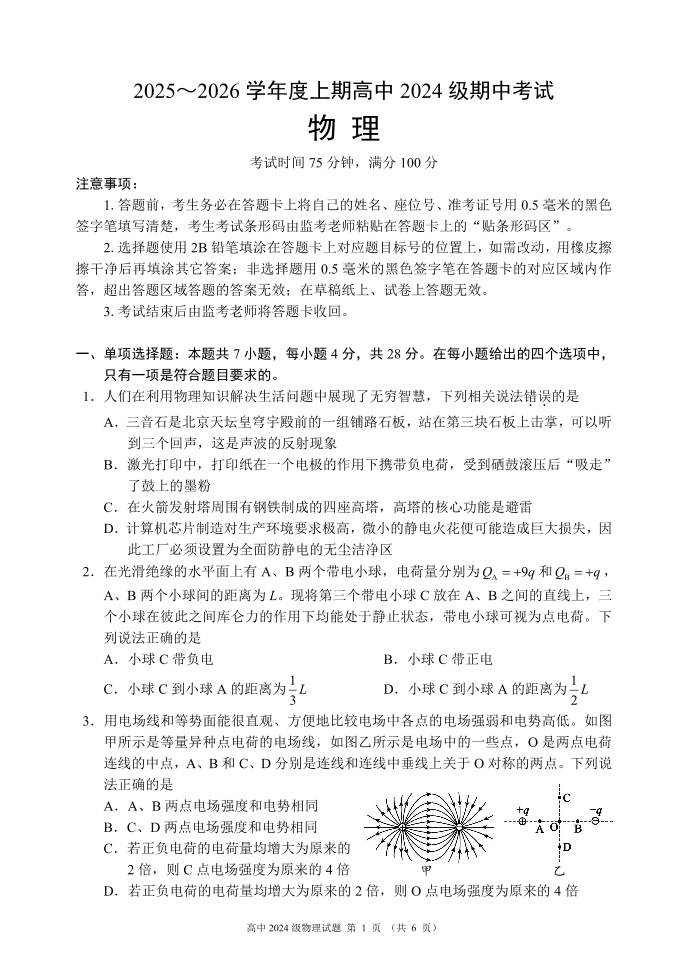2025~2026学年度上期高中2024级期中考试 物理.pdf