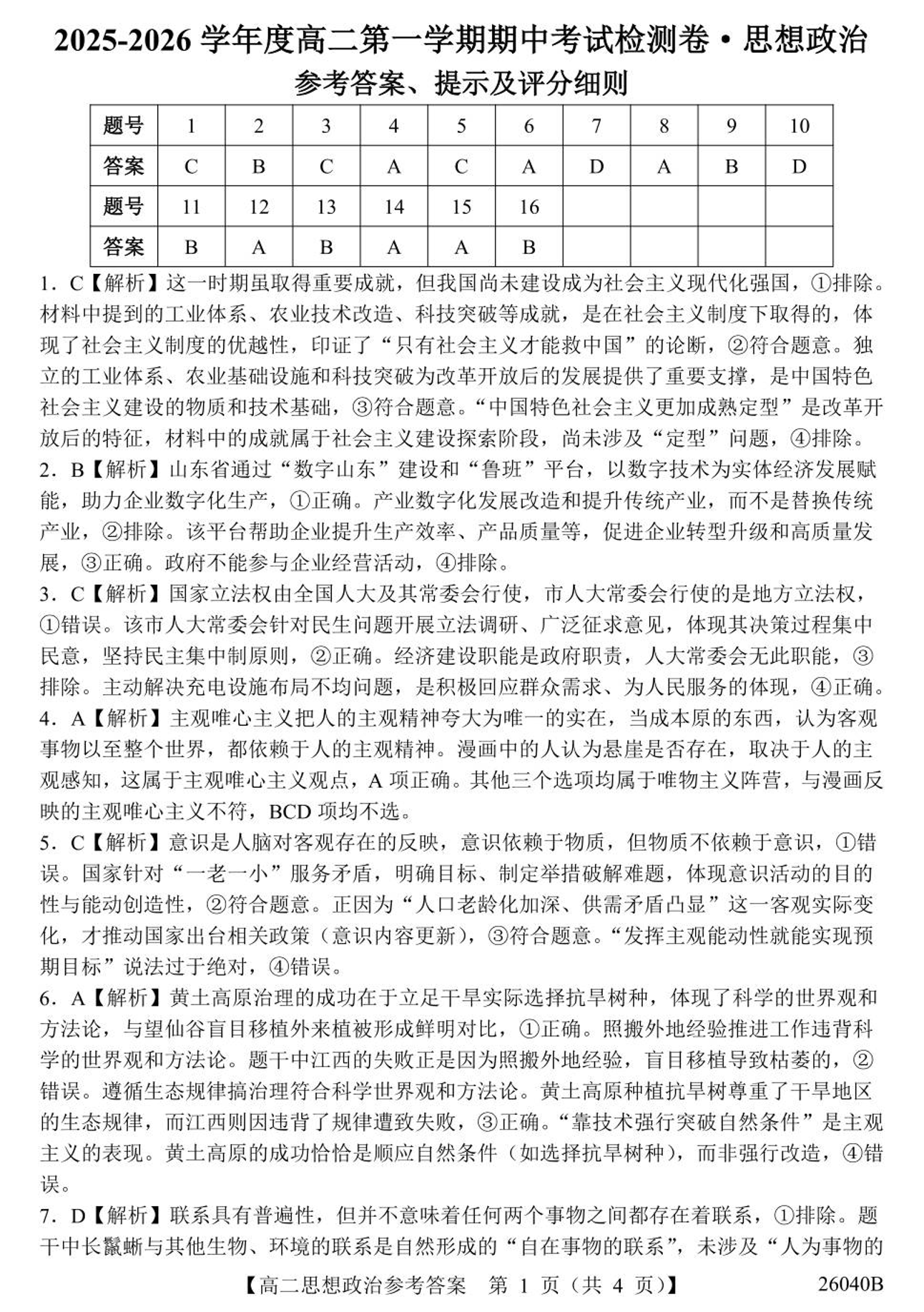 陕西省汉中市十校联考2025-2026学年高二上学期期中检测 政治答案.pdf