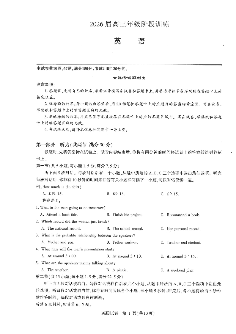 圆创联盟2026届高三年级11月阶段训练 英语.pdf