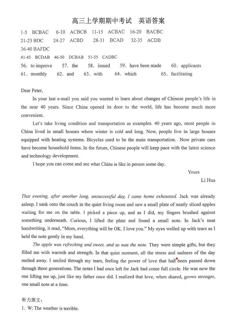 沈阳市郊联体2025一2026学年度上学期高三年级期中考试 英语答案.pdf