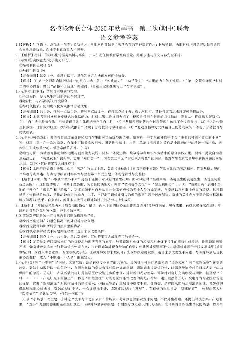 湖南炎德英才名校联考联合体2025年秋季高一第二次(期中)联考 语文答案.docx