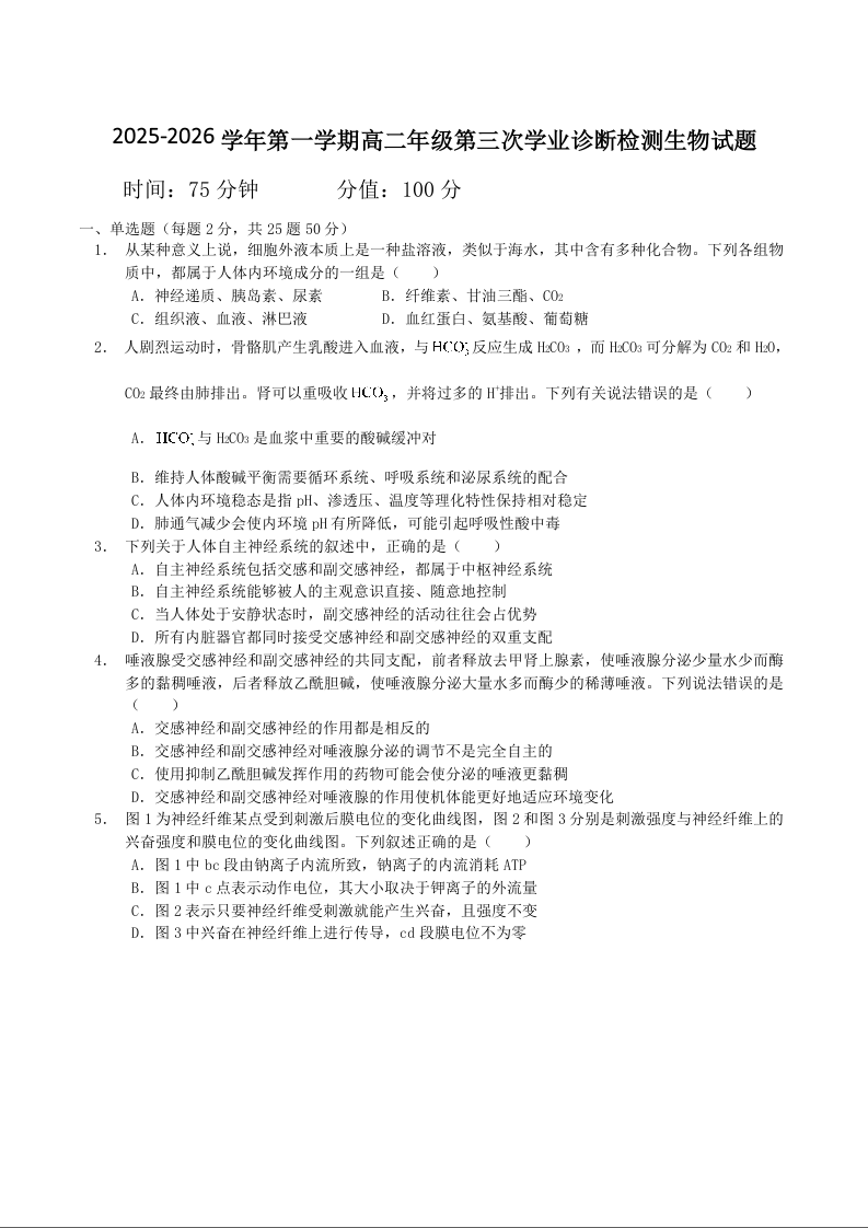 内蒙古巴彦淖尔市第一中学2025-2026学年高二上学期期中考试 生物试卷(含答案).docx