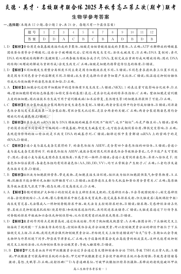 湖南省炎德英才名校联考联合体2025年秋季高二第三次(期中)联考 生物答案.pdf