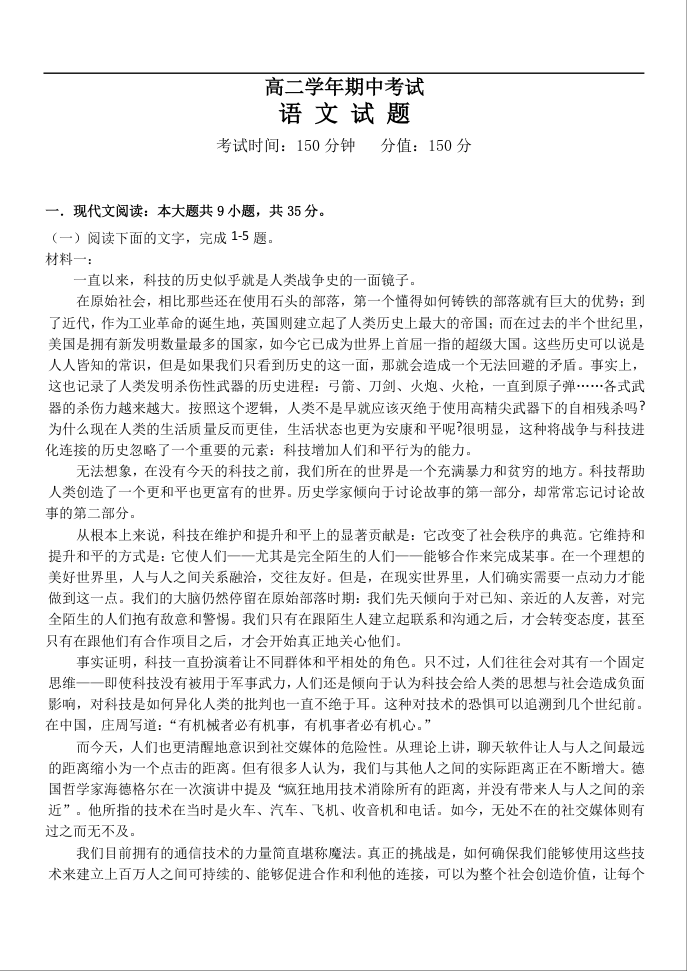黑龙江省牡丹江市第一高级中学2025-2026学年高二上学期11月期中考试 语文.docx