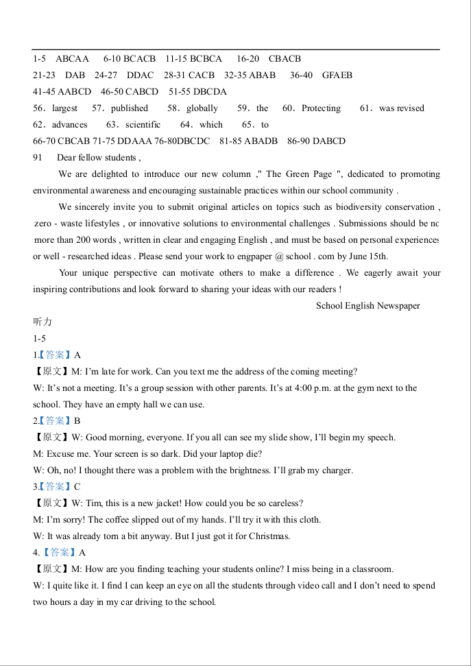 黑龙江省牡丹江市第一高级中学2025-2026学年高二上学期11月期中考试 英语答案.docx