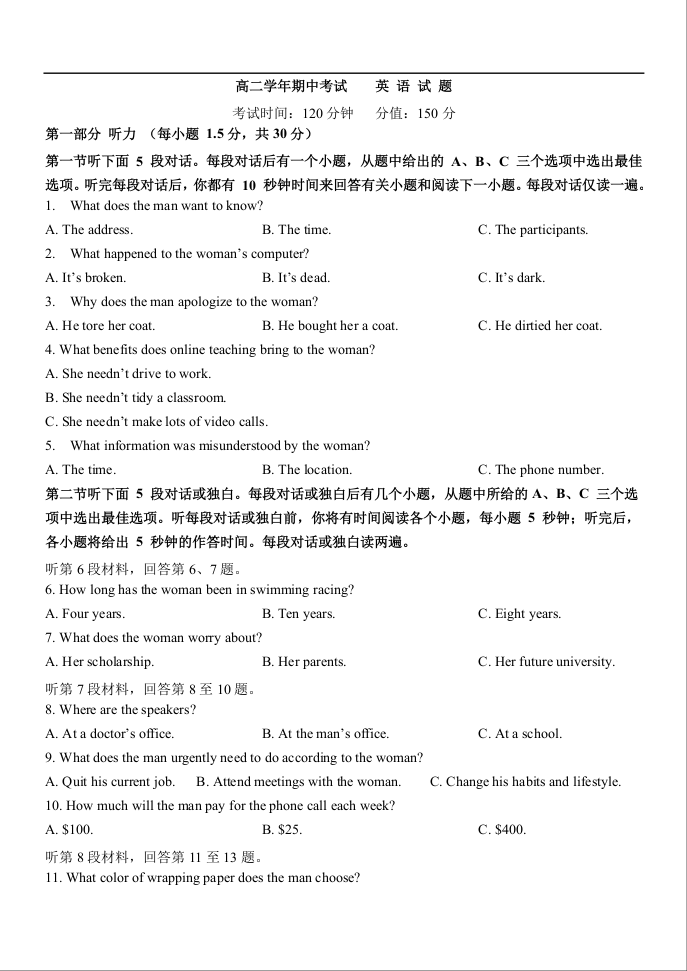 黑龙江省牡丹江市第一高级中学2025-2026学年高二上学期11月期中考试 英语.docx