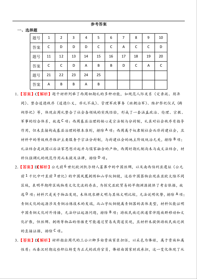 黑龙江省牡丹江市第一高级中学2025-2026学年高二上学期11月期中考试 历史答案.docx