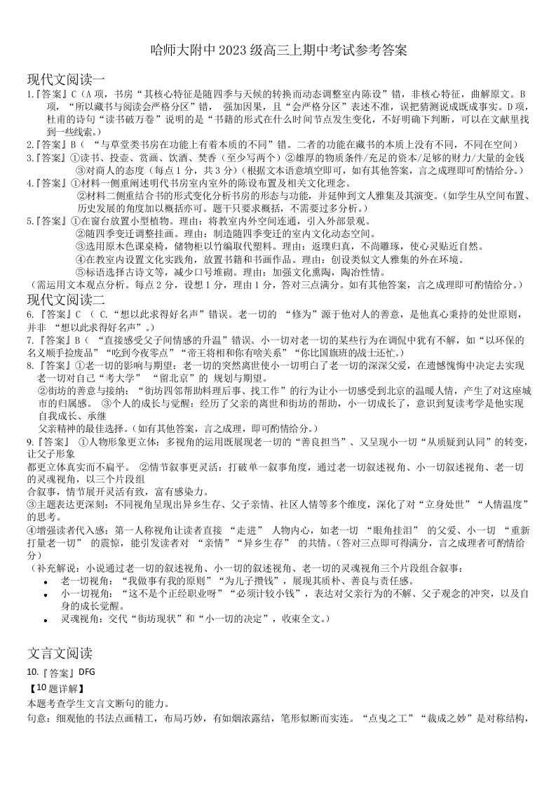 黑龙江省哈尔滨师范大学附属中学2026届高三上学期11月期中考试 语文答案.docx