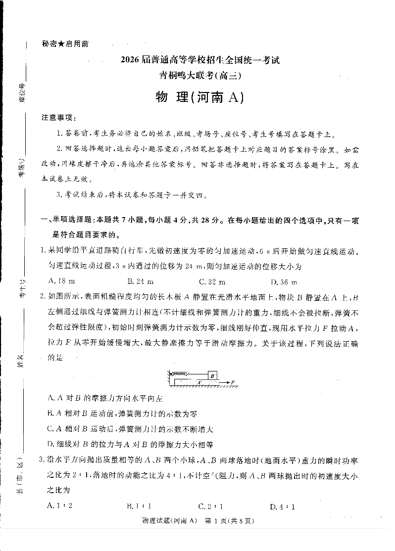 青桐鸣大联考2025-2026学年高三上学期11月联考 物理(河南A版).pdf