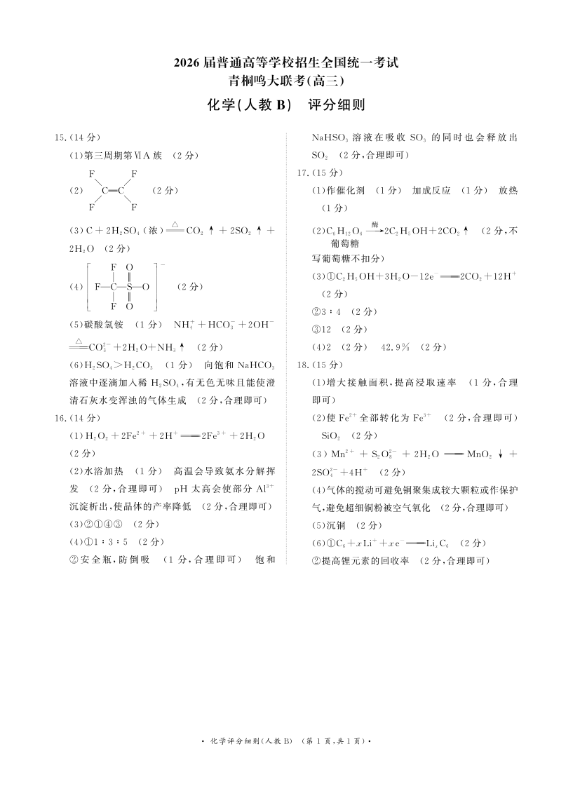 青桐鸣大联考2025-2026学年高三上学期11月联考 化学(人教B版)评分细则.pdf