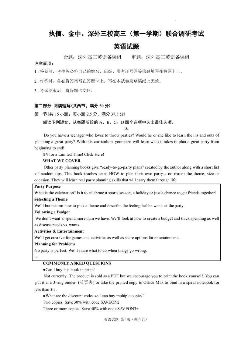广东执信、金中、深外三校2026届高三(第一学期)11月联合调研考试 英语.docx