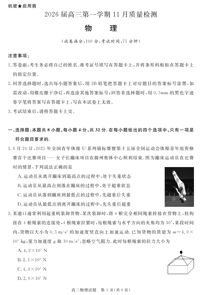 安徽省华师联盟2026届高三第一学期11月质量检测-物理.pdf