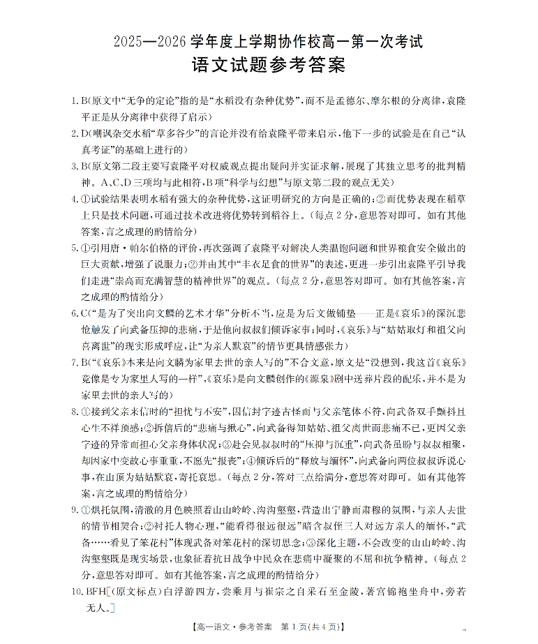辽宁省葫芦岛市、县协作校2025-2026学年高一上学期第一次考试 语文答案.pdf