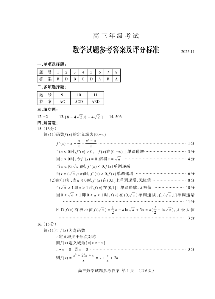 山东省泰安市2026届高三上学期期中考试 数学答案.pdf