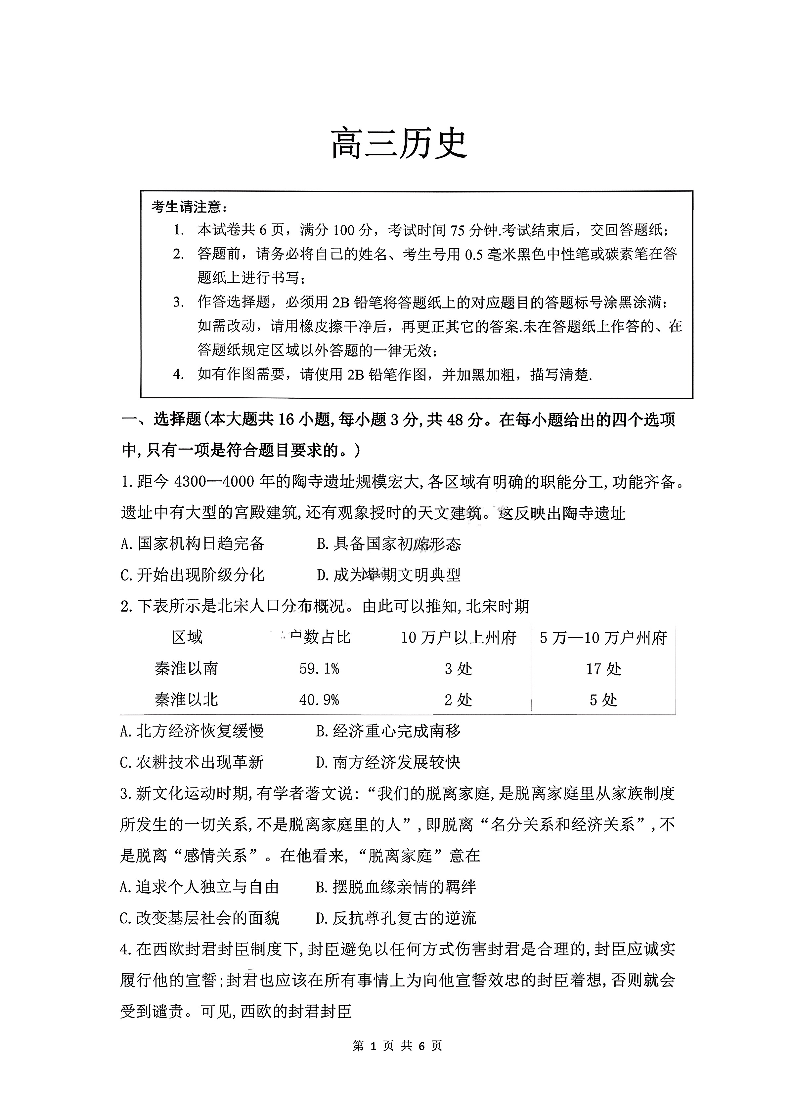 安徽省皖豫联考2025-2026学年高三11月期中联考 历史.pdf