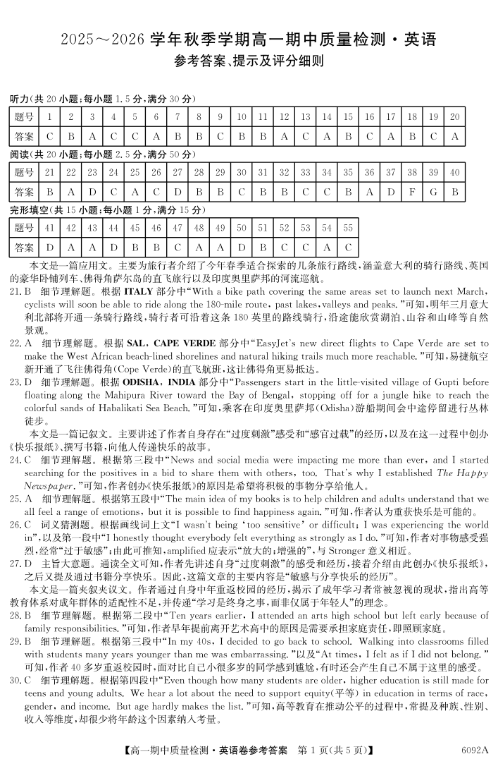 【英语答案】安徽省华师联盟2025~2026学年秋季学期高一期中质量检测.pdf