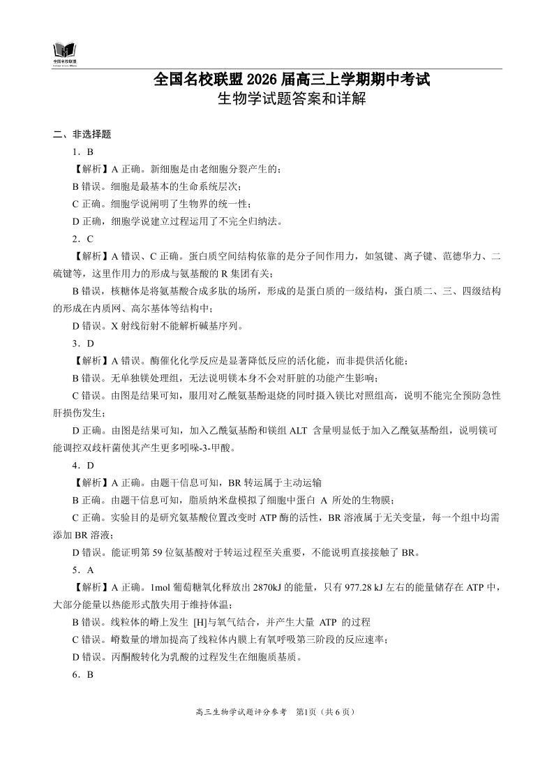 全国名校联盟2026届高三上学期期中考试 生物答案.pdf