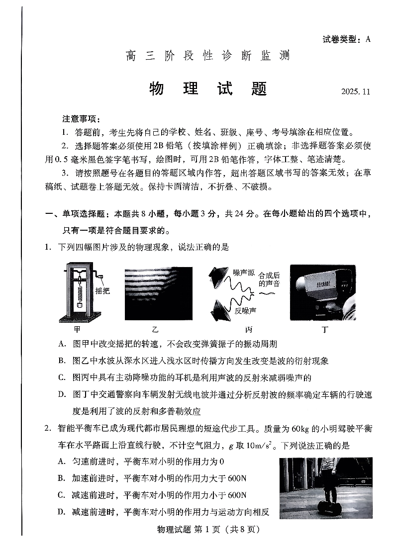 潍坊市2026届高三上学期11月阶段性诊断监测 物理.pdf