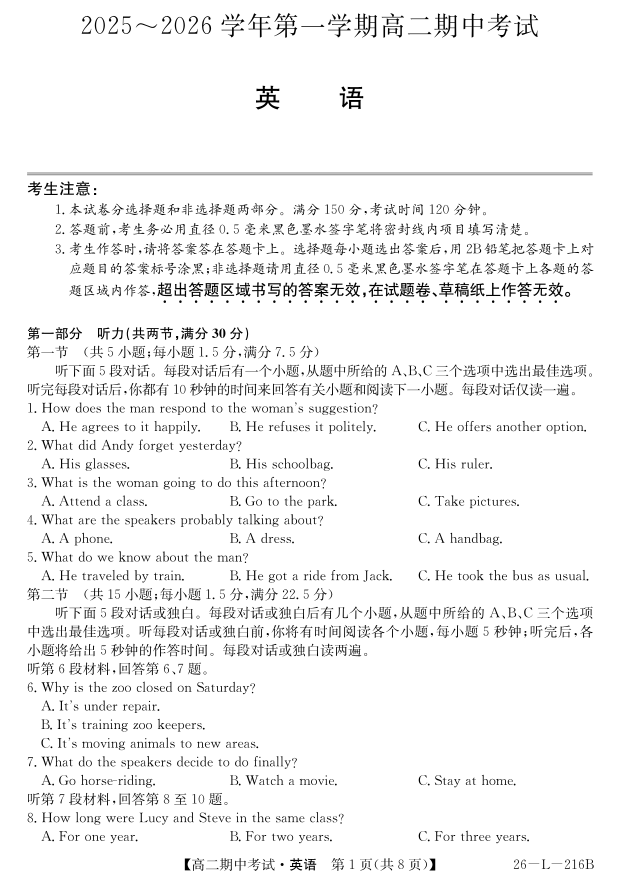 安徽省县中联盟2025-2026学年第一学期高二期中考试 英语.pdf