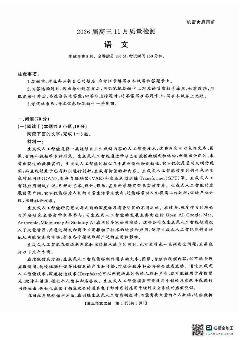 天壹名校联盟长望浏宁四县市2026届高三11月期中质量检测语文.pdf