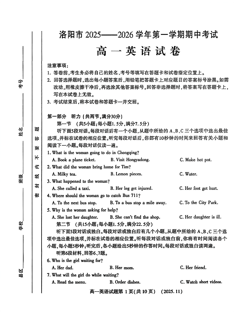 河南省洛阳市2025-2026学年高一上学期期中考试 英语.pdf