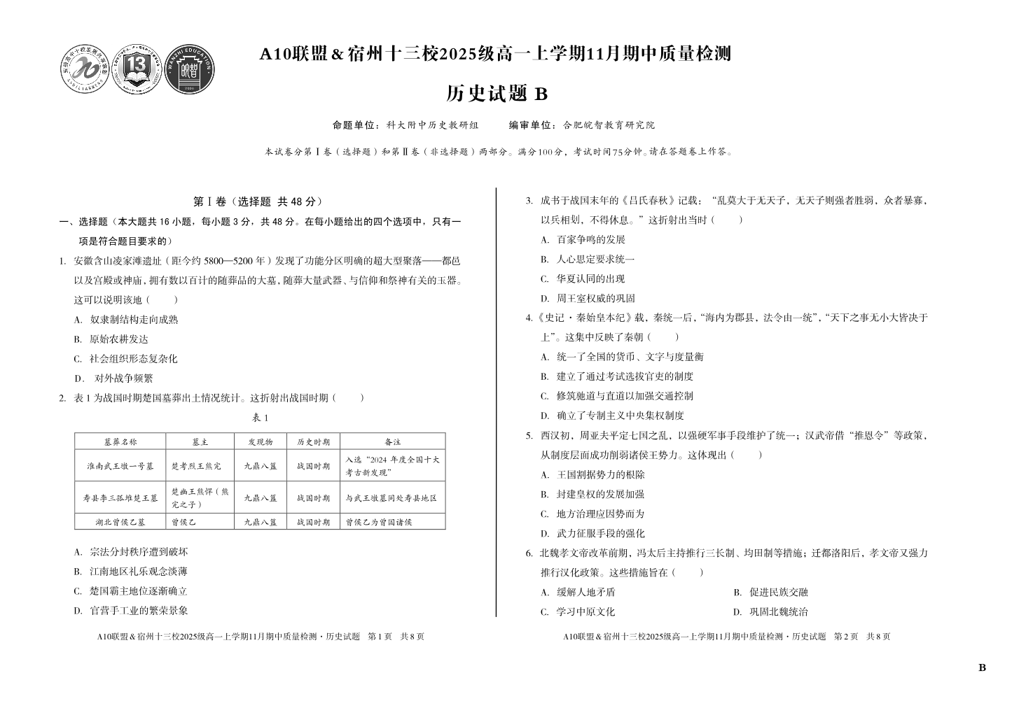 【历史】(B卷)A10联盟&宿州十三校2025级高一上学期11月期中质量检测历史B.pdf