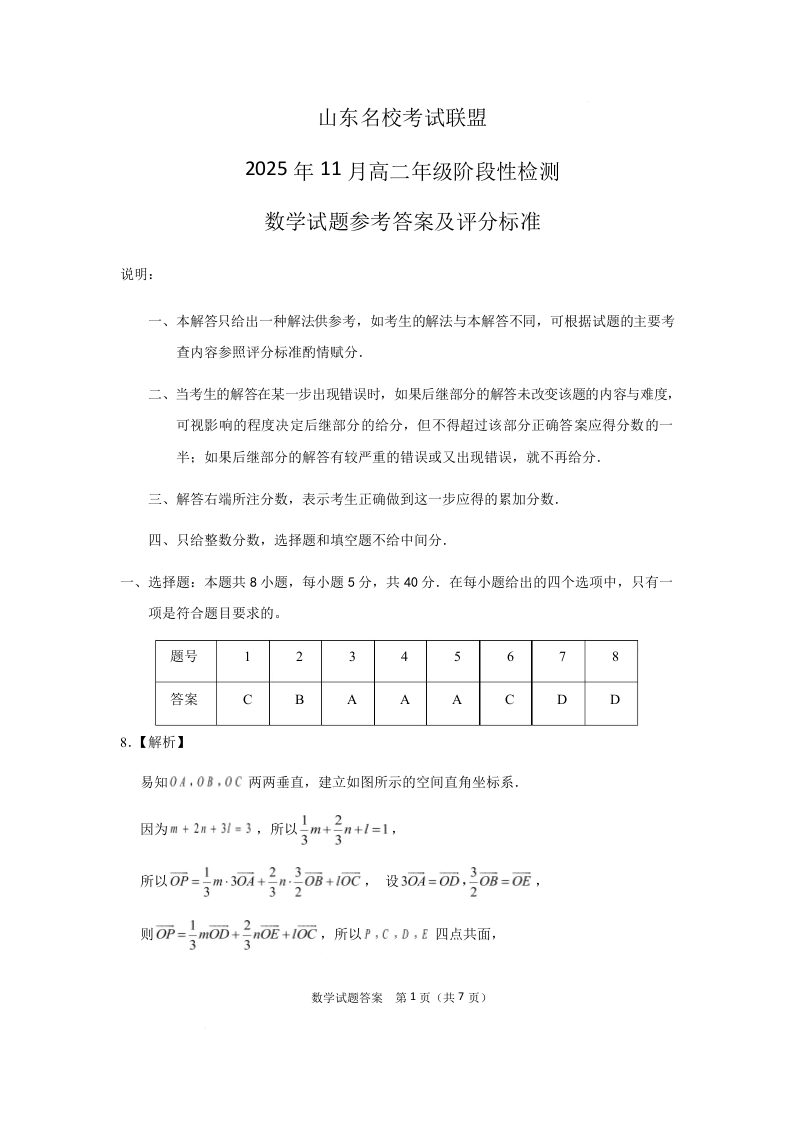 2025-2026山东名校考试联盟11月高二期中考试 数学答案.docx