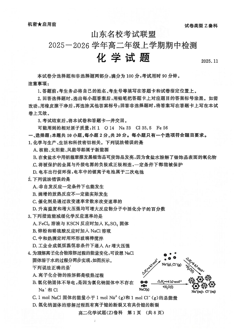 2025-2026山东名校考试联盟11月高二期中考试 化学.pdf