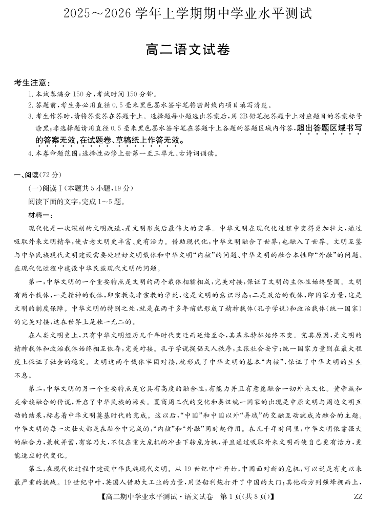 语文-河南郑州八校高二期中考.pdf
