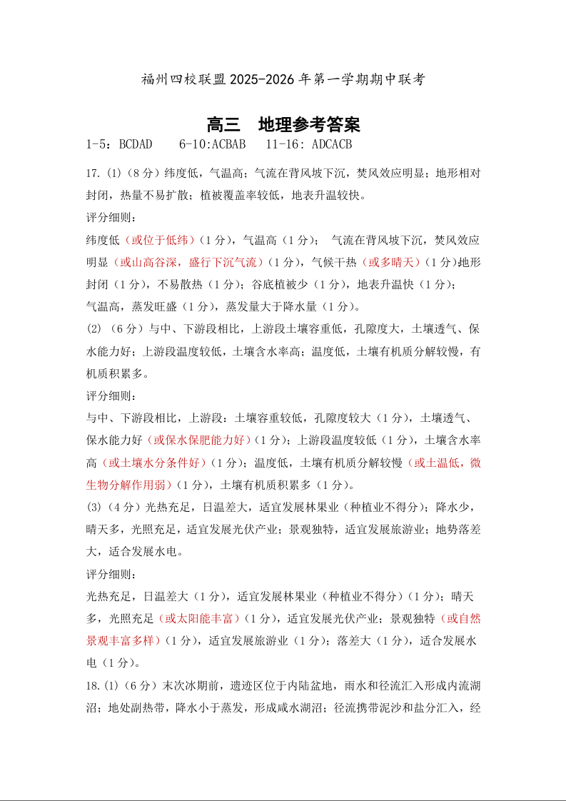 福建省福州市四校联盟2025-2026学年高三上学期期中联考 地理答案.docx