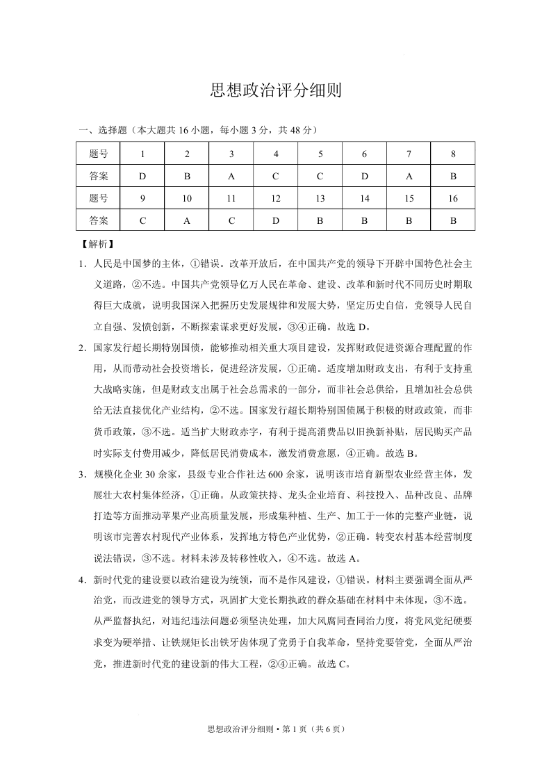贵阳市第一中学2026届高三上学期11月期中考试 政治答案.docx