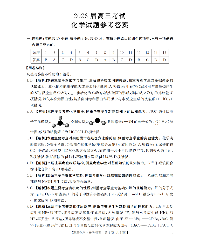 四川省2026届高三上学期11月联考 化学答案.pdf