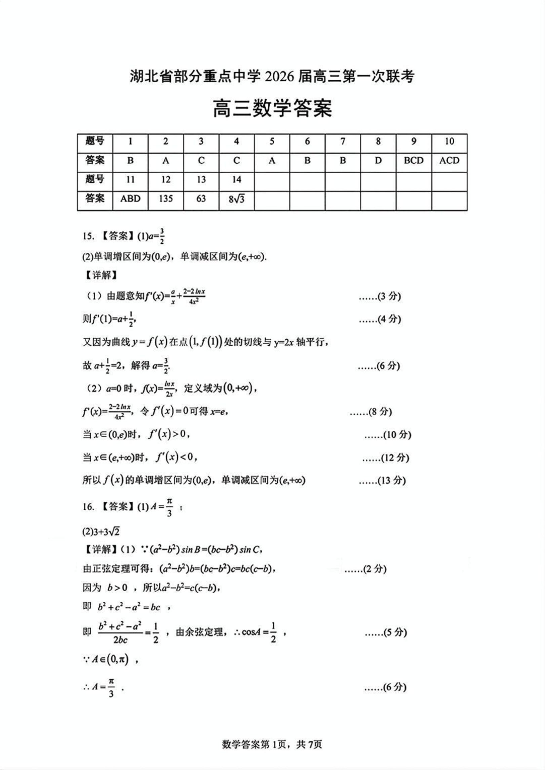 湖北省武汉市部分重点中学2026届高三第一次联考 数学答案.pdf
