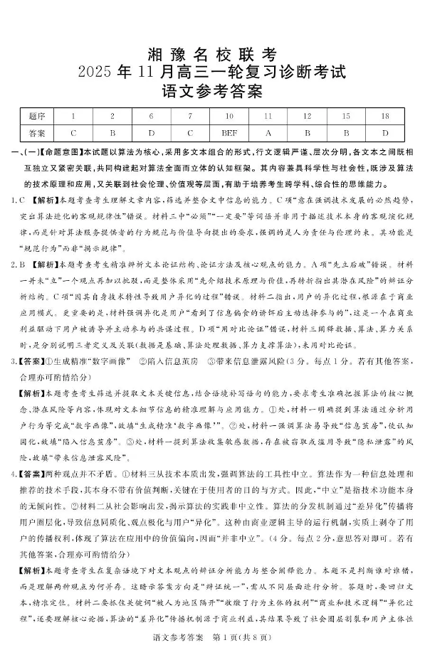 湘豫名校联考2025年11月高三一轮复习诊断考试 语文答案.pdf