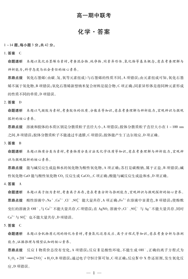 【化学答案】天一大联考·安徽省2025-2026学年高一上学期期中联考.pdf