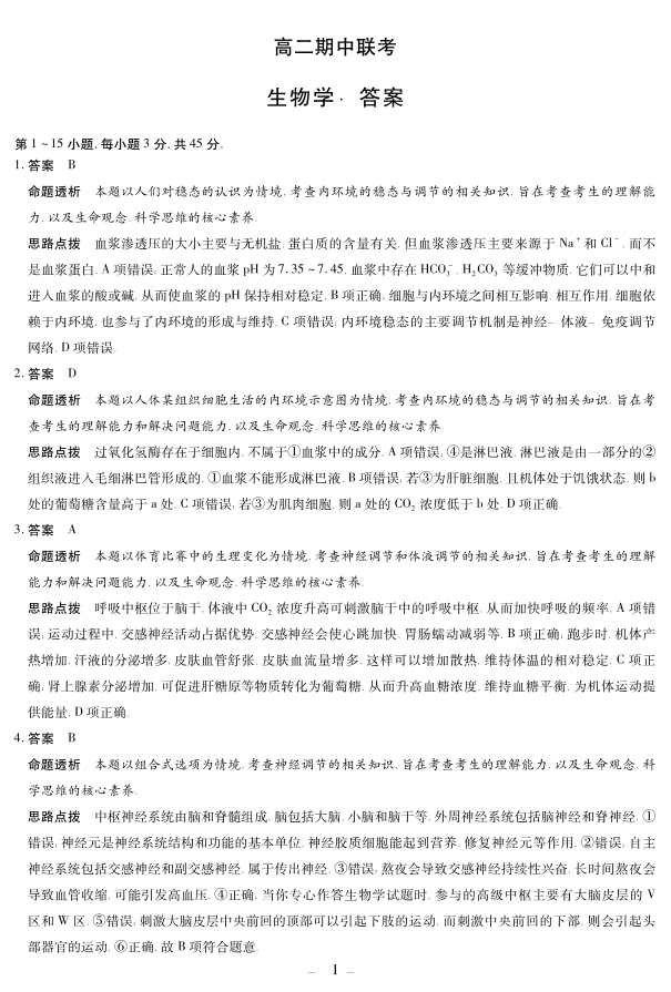 【生物学答案】天一大联考·安徽省2025-2026学年高二上学期期中联考.pdf