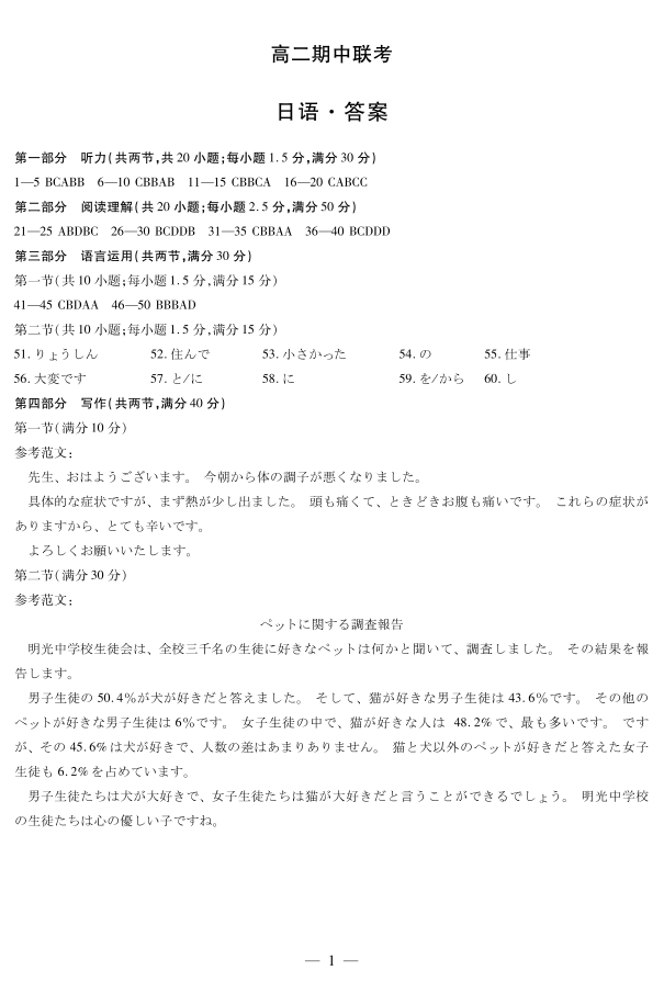 【日语答案】天一大联考·安徽省2025-2026学年高二上学期期中联考.pdf